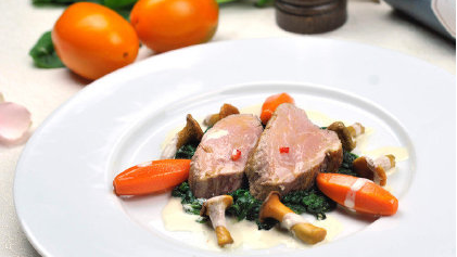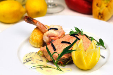 またここでは、フレンチオニオンス`プ、フォアグラ、アルバ`トブラックペッパ`ステ`キなどの蚕y議なフランス創尖を龍わうことができる。