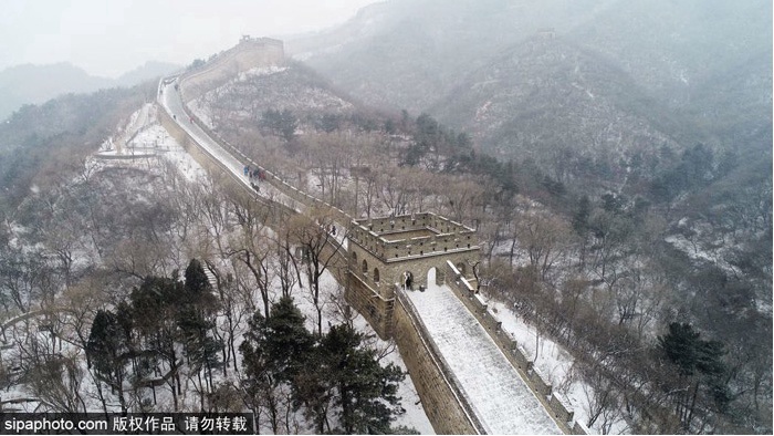 英国医生芮尼于第二次鸦片战争结束后跟随英法使团入京,他为我们留下了近代史上比较早的一份外国来华人士游览长城的记录,时间是在1861年的11月7日。他和同伴是“乘着小马和骡子”出东直门往南口的,当晚就住在南口的一家客店里。第二天早晨继续向长城进发时,发现夜里可能下过一场大霜雪,道路上结了半寸厚的冰。“山路两边都可以看到宽阔的城墙,连着有射击孔的胸墙,突出在山之上,城墙每隔一小段都有一个四方形的塔,好像长城的内岬一样”。崎岖的斜坡令马和骡子举步维艰,尤其是路上的霜雪,使它们不止一次地失足滑倒在地上。当关隘的路越来越往上时,路也越来越难走。通过居庸关后,芮尼感到他们已经被群山包围了,偶尔见到骆驼队、出殡的队伍和拿着箩筐四处收集肥田料的农夫们,他只觉得无限的苍凉。