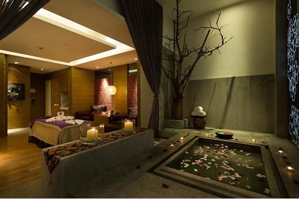牛奶浴,薄荷浴,玫瑰浴,祛风除湿汤,人参补气汤,美容养颜汤…温泉室内设12个功能各异的温泉泡池和一个半标准的温泉泳池,室外还设有8个功能泡池,能满足宾客不同的养生需求。