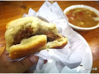 西园餐厅无冬历夏,只卖一种主食——烧饼夹肉,辅佐以2-3种汤和小菜,那感觉别提多想了,绝对是开启一个满满能量的一天。