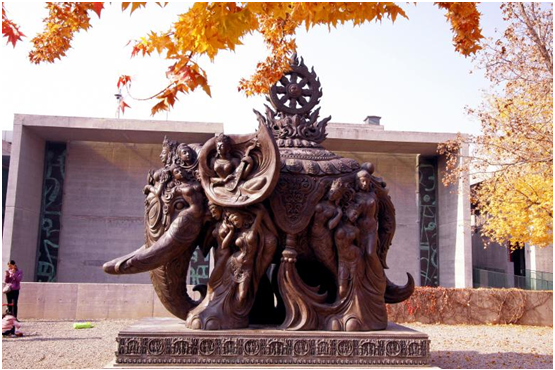 吃饱后继续欣赏艺术,可步行至梨园公园,公园坐落于八通轻轨临河里站南侧,公园由天书楼、书鼓场、中心广场、云光湖等景点组成。值得一提的是,这里还是一个很少人有知道的秋天打卡胜地,每到秋天,里面的各种叶子就变成金黄,散落一地,非常唯美,值得一看。