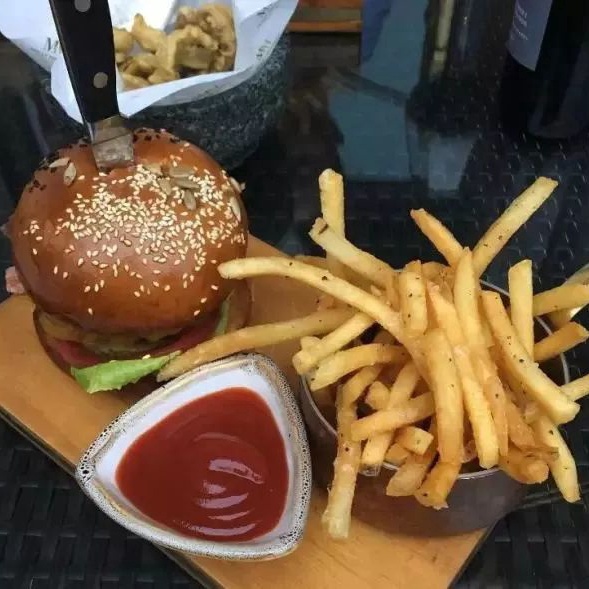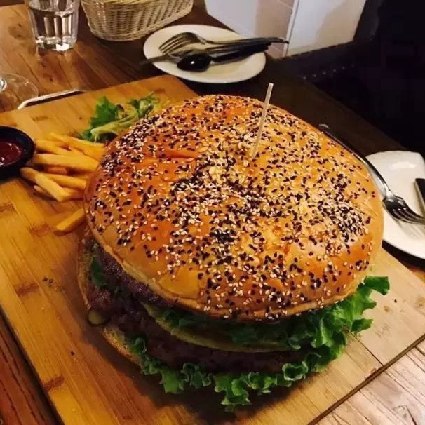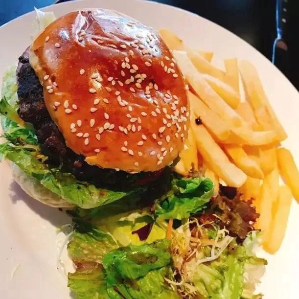 汉堡真的名副其实的大!肉很多,是那种很厚的肉饼,而且火候很到位,口感很鲜嫩,味道不错,面包也很松软,配上配菜和酱汁,味道真的很赞。