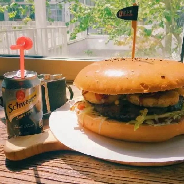 蒙大拿州烧烧汉堡,超大超高的大汉堡!不要愁如何吃,可以一层一层分层吃,切开后的牛肉饼,用料极足,采用澳洲进口的180g牛肉饼切面层次丰富且肉饼厚实,几口下去就比较有饱腹感。