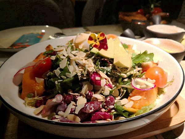 在美轮美奂的花房里用餐是一种怎样的体验?来这家叫花厨的餐厅吃饭,说话得细声细语,呼吸也变得小心翼翼,生怕惊扰了这些娇艳欲滴的花朵。餐桌上的花瓶里插着新鲜采摘的花草,每道菜品上都有鲜花装饰,太好看了,都让人不忍心吃。花厨彩虹卷用透明米皮包裹着黄瓜、番茄、紫甘蓝、芒果、虾仁、牛油果等新鲜食材,蘸着色拉酱吃,营养又美味啊,一口一口吃掉彩虹啊。特色班尼迪克蛋,半熟流心软嫩的蛋黄,简直是每个人都无法拒绝的诱惑。班尼迪克蛋真的满足了人们对温泉流心蛋的所有幻想。