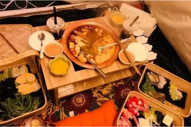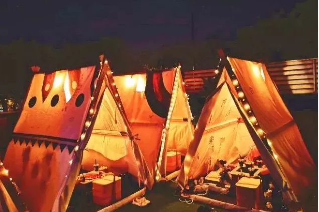 如何招待热辣活泼的可爱型小仙女?自然是吃一顿亲密的小火锅啦!佐佐家的屋顶帐篷,最适合现在这种不冷不热的天气,挂着彩灯的小帐篷里面支上热气腾腾的小火锅,瞬间消除了外界吵嚷的声音,半私密的空间绝对是聚会首选了!