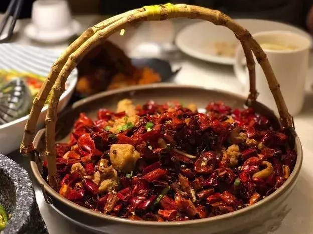川菜中的经典辣子鸡,光是看着这些鲜红的辣椒都有种食欲大开的感觉!鸡肉块都是事先炸过,所以外壳酥香麻辣,加入红椒柿子椒爆炒之后口感更是麻香,就连炸过的红椒都香到不行!