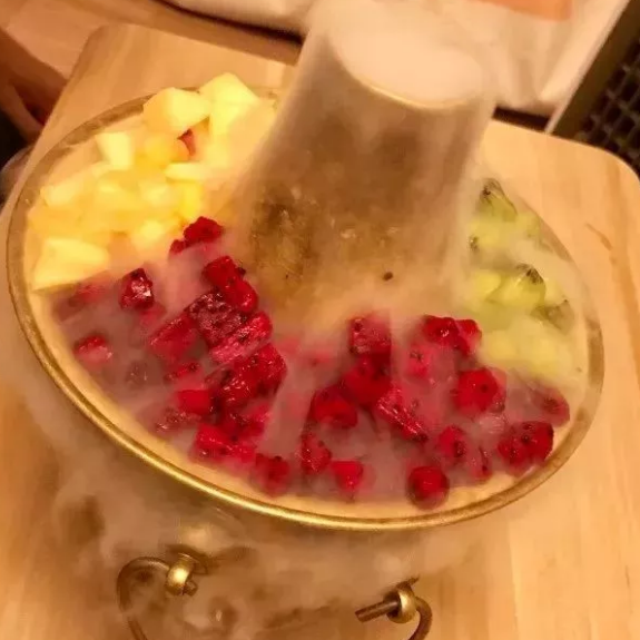 仙气缭绕的水果锅底,大概是最清凉解渴的锅底了。满满一大锅的红心火龙果丁、猕猴桃丁、芒果丁,菠萝丁等等,再加上锅底里面香甜美味的冰激凌,每一口吃进去都是幸福的味道。