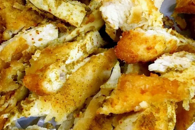 主打鸡腿、鸡排、鸡柳,鸡皮。鸡腿鸡排腌制的入味,火候控制的也好,不硬不柴。作料里的芝麻是点睛之笔,刚出锅的非常好吃,买完就忍不住吃几块儿。