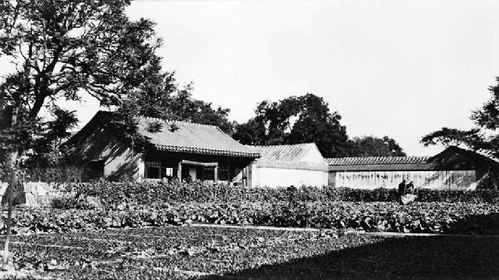 海潮观音庵,俗称海潮庵,始建于明嘉靖年间,位于银锭桥南侧,因紧邻前海,夜间风停人静时从寺中可听到波涛拍岸之声,故名。明崇祯六年(1633年)冬季,英国公张维贤乘冰床来到银锭桥旁,见风景极佳,于是购买海潮观音庵庙地构筑新园。《帝京景物略》的《英国公新园》中写道:“东过而春夏烟绿,秋冬云黄者,稻田也。北过烟树,亿万家甍,烟缕上面白云横。西接西山,层层弯弯,晓青暮紫,近如可攀。”