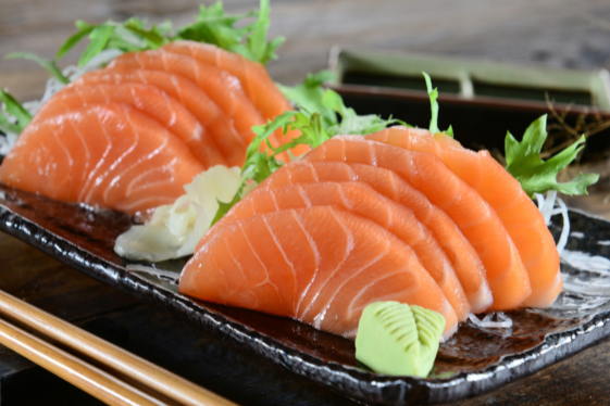 刺身对于鱼肉要求很严格,新鲜尤其重要。品尝刺身时,不可以把芥辣放进酱油,而应该把芥辣放在刺身上,再把刺身向内对折,用没有芥辣的一面蘸酱油食用。