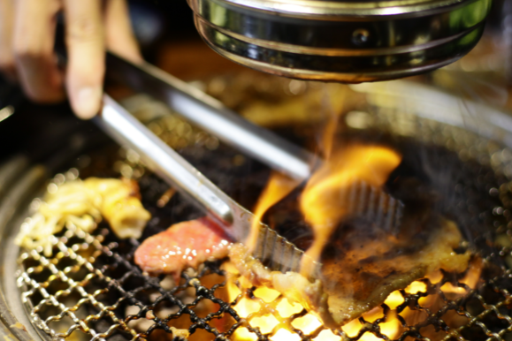 日式烤肉使用的肉为猪五花肉,烤前肉需要腌渍,烤好后配以豆芽食用。
