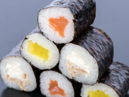 寿司卷是日本料理寿司的一种,主要使用寿司卷帘将用海苔包好的一条寿司卷成卷状,并用刀切成块状的食品。寿司又称四喜饭,是日本料理中最具代表性的料理之一。