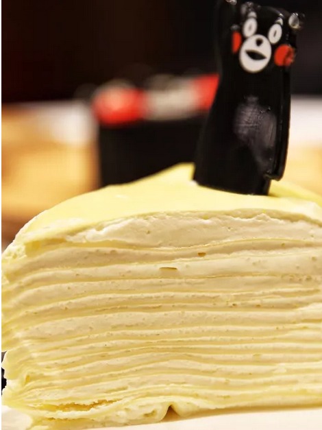 喜欢榴莲的朋友们赶紧看过来,幸福千层蛋糕层层分明,一看这种蓬松感就是新鲜刚做好的样子,榴莲香气很浓。吃蛋糕的时候上面的熊本部长还在伸手打招呼~ 都是可食用的巧克力,快,拽出来吃掉!