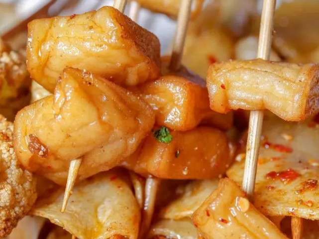 除了鸭肠还有炸鱼豆腐啦,炸土豆片、炸广式香肠、炸玉米,炸花菜,炸一切!这些炸串串,快来尝尝吧!