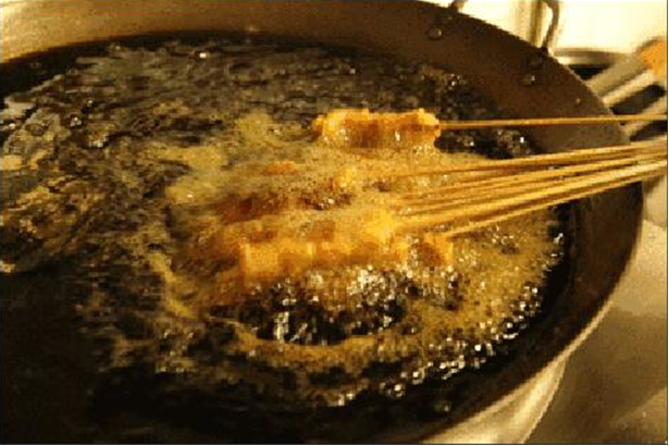 油炸?撒子油炸?街边边上的油炸摊摊么?那怕还没得烤面筋好吃哦……哝,就是它!