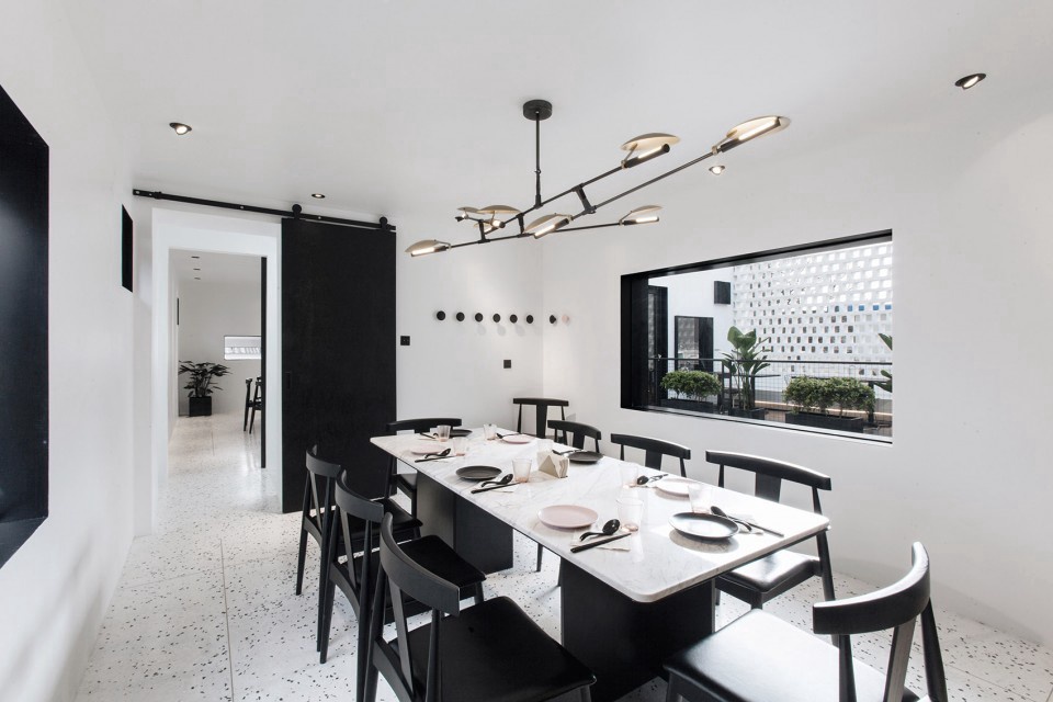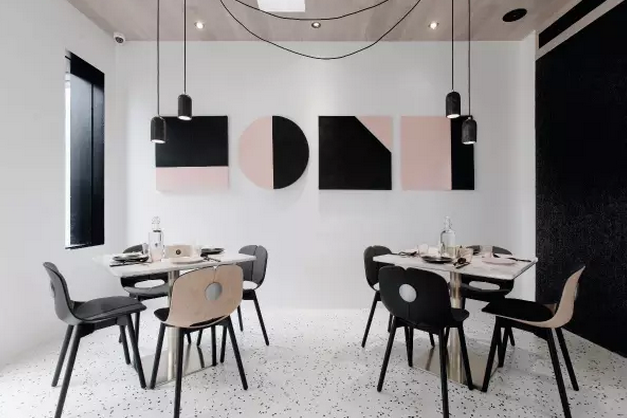 设计师用一扇窗,一幅景作为餐厅元素的由来,把原“窗”的方形元素运用到了整个建筑以及配饰当中。他们希望在这里就餐的每一位客人所看向的窗外都是一幅别致的自然装饰画。