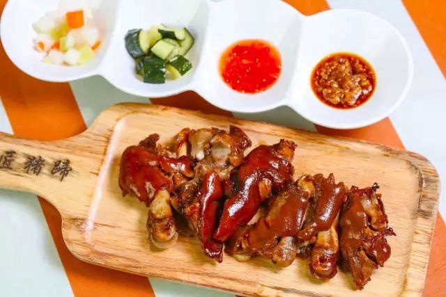 店家为了让你体验不同的味道,还特意准备了甜辣酱和蒜泥酱两种不同口味的酱汁~用热乎乎的猪蹄蘸着吃,绝对是不一样的滋味啊!!!
