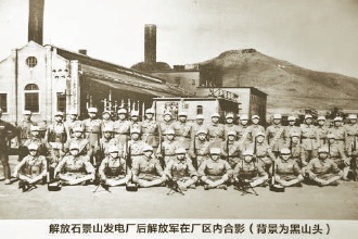 1948年解放石景山发电厂后,战士们在厂区内合影(资料图)