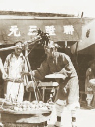 果农跟着“果驼子”一起来到果子市,亲自看着果行跟买家讲价,由于涉及到提成的多少,所以果行绝不压价,毕竟卖的价钱越高,拿的提成也就越多。讲好价后,过款成交,一般是中午前货能出手,下午果农就可以骑着毛驴上路回家,也有的会在城里住上一夜,尤其是南市的客商,逛逛天桥,听听小戏,买些日用品什么的带给老婆孩子。