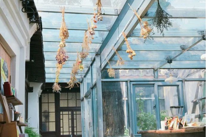 透明玻璃的天窗挂满了干花,大大的阳光直射在身上,整个人都沉醉其中···