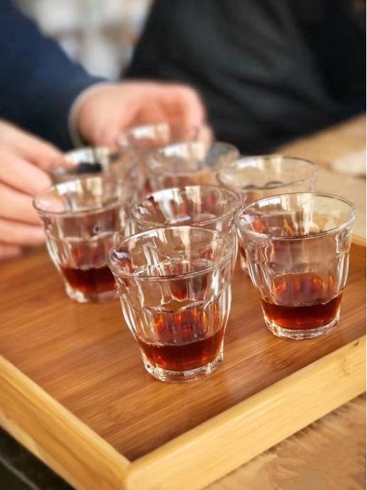 手冲红樱桃咖啡呈现好看的琥珀色,浅焙下味道干净甜美,花香果香四溢,与带果香的醇苦之味一起流入喉头,回味无穷。