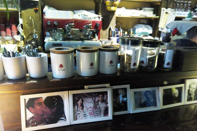 小店的外围摆满了各种花花草草、文艺、清新的感觉扑面而来,踏步迈入,内部摆放着电影拍摄的一些合影,那温暖的画面勾起了脑海中的回忆,十分温馨。