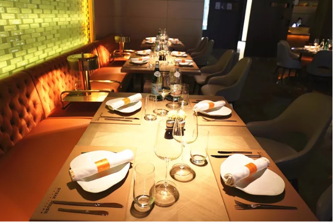 在牛排家,大到牛排切割粗犷刀具,小到甜点必备精致小勺,服务生都会在每一份菜上桌前进行及时更换,餐桌中央,两朵香槟玫瑰盛在精致的玻璃盏中,散发着悠悠的香气。