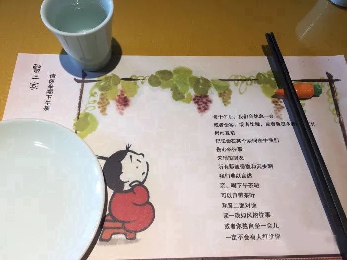 没有传统中餐厅那种中规中矩、古香古色的装璜,给大家的确实一种萌萌的佛系阿Q精神,让很多年轻人寻找到一丝可以抒怀的好去处。