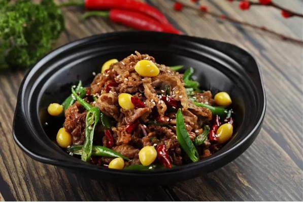 香辣肥牛是一道餐桌必点开胃菜,甜辣可口,让人有一种越吃越想吃的冲动。大刀快剁,大火快炒,保持住了肥牛的鲜嫩口感,搭配上微苦银杏,两者口感相融合,辣味和苦味在一起恰到好处。银杏的加入给这道普通的菜品赋予了新生命。