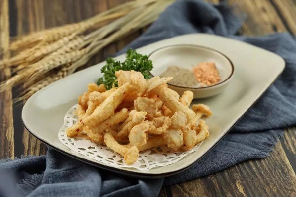 白玉菇的颜值担当,口感酥脆,这道白玉菇被鹿港小镇赋予了台式新生命,油炸后的白玉菇酥皮盔甲之下难挡诱人之味,咬开油炸外层却保留了食材的清香原味。真是不可思议!