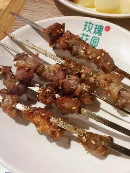 想吃到这道菜就要瞄准时机了,幸好我过去的时间刚刚好,不然晚一点可能再要等很久,羊肉串吃起来味道也很好,香而不腻,嚼起来肉香浓郁。