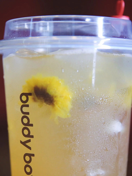 菊花茶2.0版,里面加了米汁。浓郁的米香混合菊花香,清爽解渴。在热得令人燃烧的天气里,拿一杯加冰的米汁菊花边走边喝,冰爽又惬意。