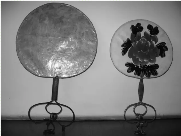 太平鼓铁质鼓圈上蒙着牛皮纸,鼓把下端是大小两个铁圈拼成的葫芦形,上面挂着12个铁环。传说当地曾住过清宫里的宫女,她们都穿着花盆底鞋打鼓,至今舞者动作仍以学女子耍鼓姿态为美,步幅小,姿态摇曳。