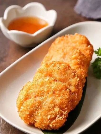 炸虾饼和鱼饼的外形类似,但是口感完全不一样哦!虾饼的从内到外全部都是虾肉,外壳炸的脆香,咬开之后里面的虾肉非常非常的Q弹,蘸上甜辣酱之后味道很棒。餐后小食的首选!