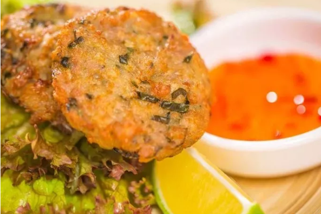 越式鱼饼,用鱼肉馅和面混在一起,做成的鱼饼。在越南菜主打轻油概念的菜系里面,大概是最“重口味”的道菜!非常街头的越南小吃味道,外焦里嫩,咬开之后能吃到鱼肉香本身的鲜美味道,清口不腻,超级推荐!