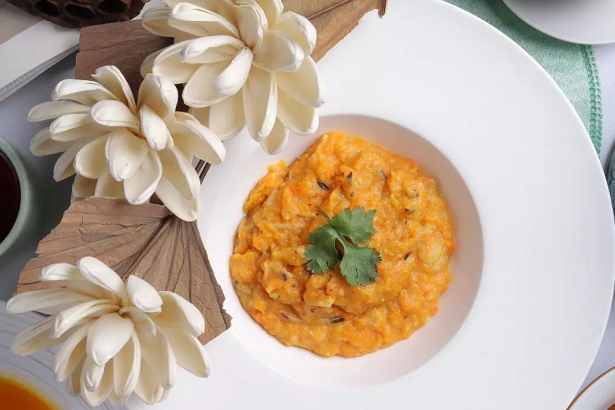 莲花空间精选甘肃面土豆和丁香胡萝卜,两种蔬菜的组合使这道菜口感绵密且伴随清香,这样的蟹黄,小编愿意天天吃。