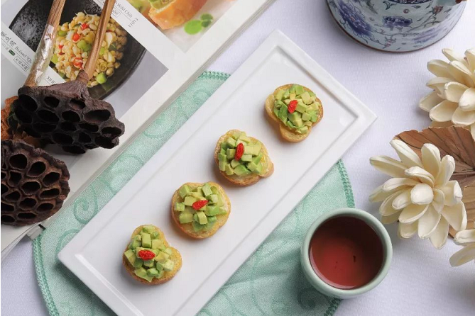 莲花空间用自制的蜂蜜柚子酱代替了传统的沙拉酱,使这道沙拉带有柚子和蜂蜜的独特香甜,与牛油果一起食用,口感顺滑、酸甜可口。