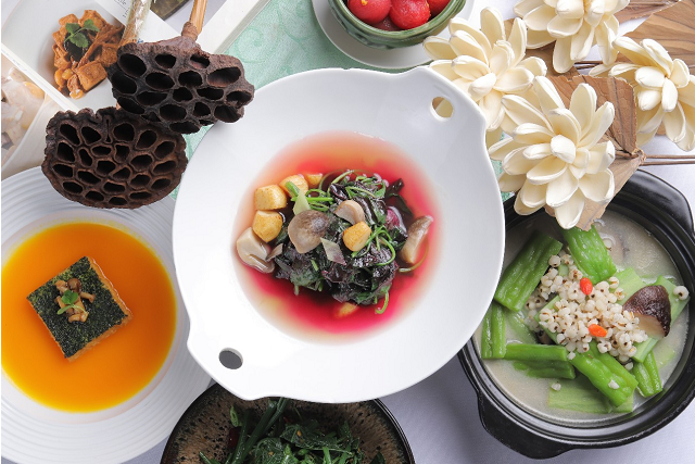 莲花空间作为一家素食餐厅,倡导“蔬食主义”,注重“天时地利人和”,秉承中华养生理念,顺应自然法则选择食材。