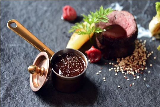 绿豆汤的清爽,配合营养价值极高的带子以及墨鱼汁的独特味道,呈现出的这道绿豆汤搭配煎带子面包墨鱼酱,一定是夏日里的不错选择。