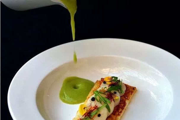 优选带子贝只中间的肉柱,用新西兰的黄油将带子肉慢慢煎制上色,最大程度体现其本身的口味;将新鲜豌豆煮后搅拌成汤,最大程度的保持其营养成分,再配合深海墨鱼精华,使此菜品不仅营养更有独特风味。