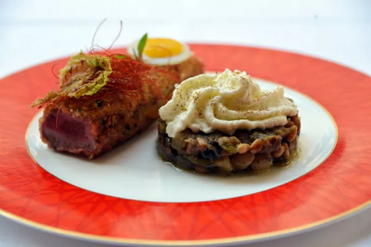 6、香煎薰衣草羊排搭配茄子坚果酱土豆泥