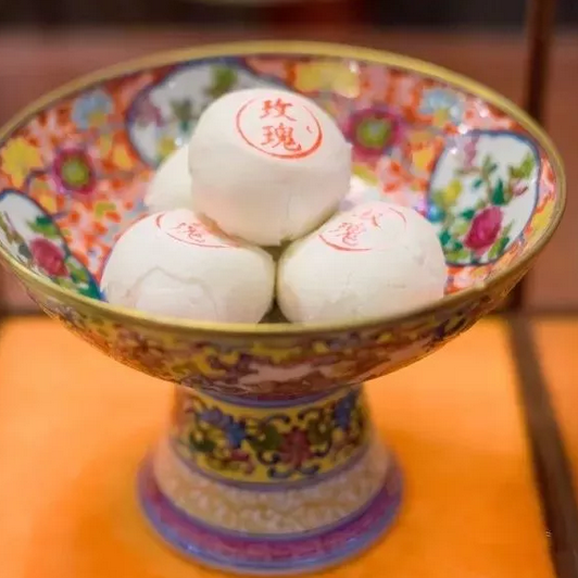 最为经典的满族点心,已经几乎失传。奶香味十足,松软中带着些密实感,淡淡的甜味口齿留香,甘甜会从舌根泛出来,再加上白底红花绿叶的配色,养眼清新又美味,最适合配着醇香的宫廷奶茶一起吃。
