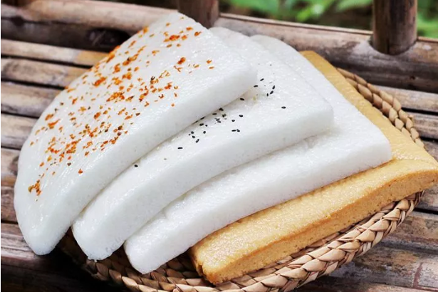这款米糕蒸熟之后有股清淡的米酒香味,口感更加Q弹,最外层的米皮吃起来弹力牙滑嫩,又格外的松软甜香,米糕表面还特意撒上了桂花,香甜的味道完全浸入了米糕内部,有股自然清新的甜味,丝毫不腻。