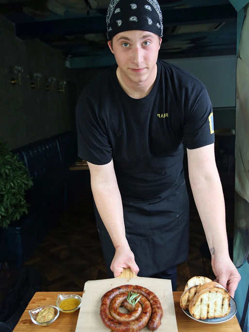 第一次见到这么大的香肠整根上桌,这家店的1公斤香肠卷拉开有1米4高,如果是人上车都得买票了哈哈哈哈哈,分量足足1公斤重。