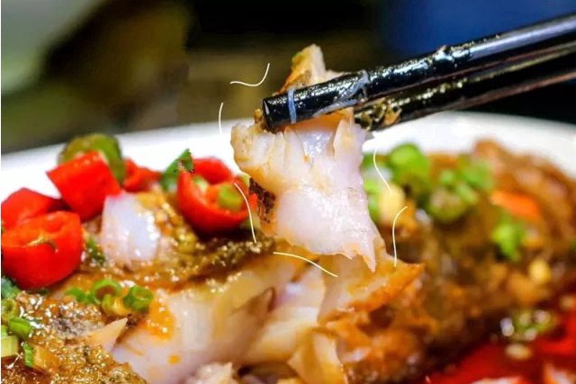 鱼头鲜嫩入味,并没有想象中劲辣,拨开剁椒的点缀,鱼肉夹在筷子上颤颤巍巍,放到嘴里,软滑鲜嫩无比。