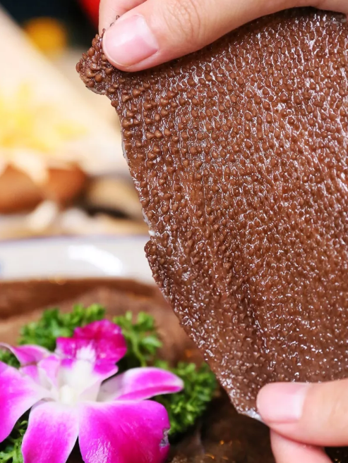 48小时大刀黄牛毛肚是店里的招牌,来自于重庆市面上最优质的水发毛肚,48小时就是说两天去机场拿一次货,保证新鲜~这种毛肚相对来说肉更厚实,吃起来更有嚼劲,很脆弹。还是老样子呀,涮到毛肚微微卷曲就可以吃啦。