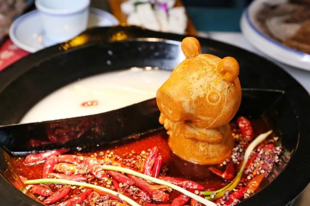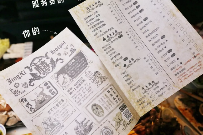 这家火锅店像去到了民国时期的重庆夜市,点菜用报纸,吃饭在路灯下,门口还有两口巨锅现场炒料,还把小猪佩奇放锅里煮~