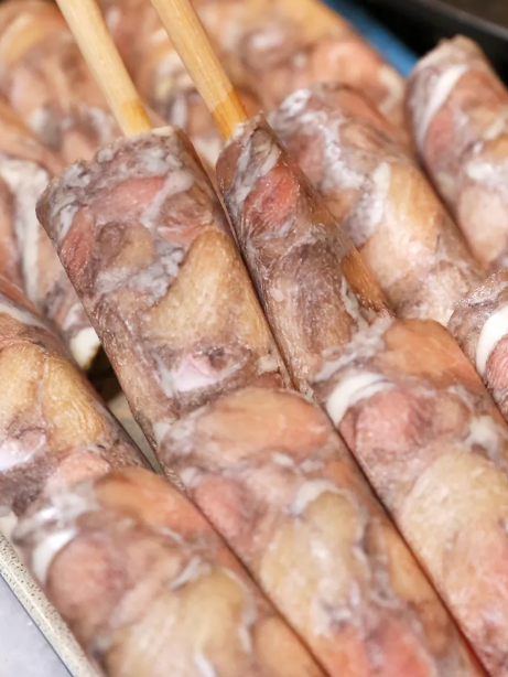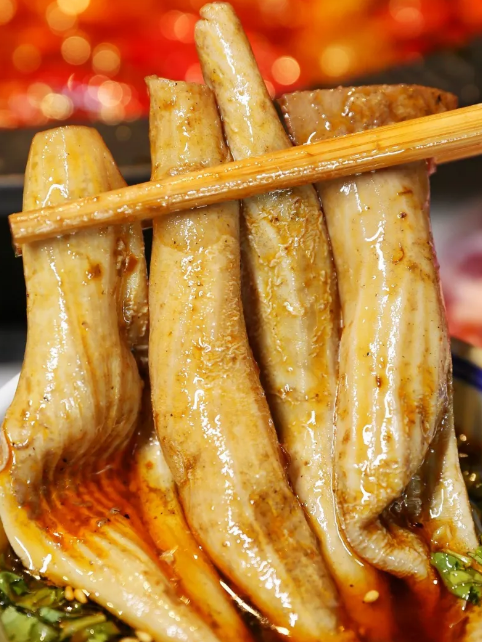 郡把是位于鸭胗和鸭食带之间那块的部分,轻轻一拉特别Q弹。据说郡把对新陈代谢也有很大帮助,新陈代谢快等于瘦子体质啊啊,我要多吃。