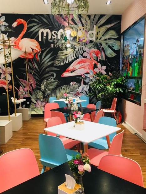 终于来了传说中的火烈鸟餐厅,欣喜若狂。所有的甜品都颜值在线,ins风扑面而来,食物送上来的时候光顾着拍照都舍不得吃,墙上的贴画、地上的摆件、桌上的鲜花、拱门上的装饰,都是各种各样的火烈鸟,仿佛置身于森林的party之中。