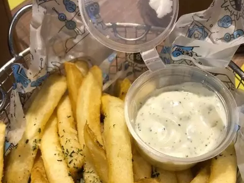 黑松露风味薯条,很喜欢这种脆脆粗粗的薯条配的沙拉酱,吃久了会觉得沙拉有点甜腻,可以去自取番茄酱,一边蘸酱一边吃汉堡,过瘾。薯条口感是外脆里软,有松露的香气,个人口味更偏向白色的酱汁哦。